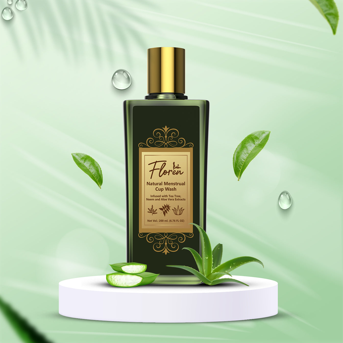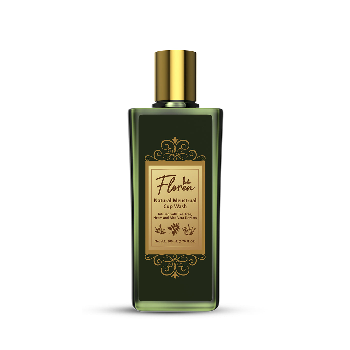 Floren Menstrual Cup Wash with Neem Aloe Vera & Tea Tree Oil to Prevent Infections, Blood Stains, Stickiness and Remove Odour - 200 ml (Pack of 1)