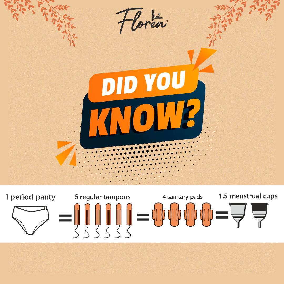Floren Reusable Period Panty is a cotton period panty that will absorb your period blood. You will not have to wear any pads or menstrual cups. The absorbing material is stitched into the period panty and you can enjoy a leak-free and stain-free period experience because of its wide coverage.